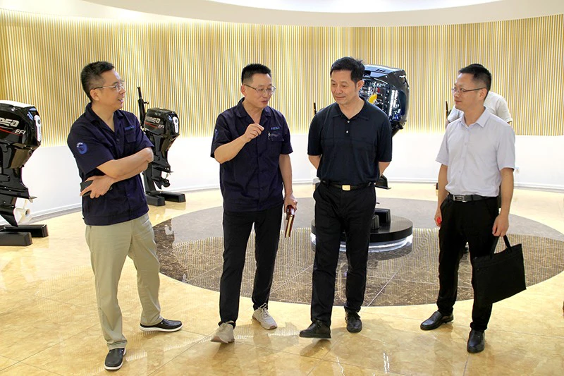 蔡德全副主任一行领导参观了海的文化馆,海的公司领导向蔡德全副主任简要介绍了企业概况、发展历程,海的系列舷外机产品的性能优势及产品在防洪救灾、应急救援、警用巡逻、抢滩登陆、交通运输等方面的广泛应用。