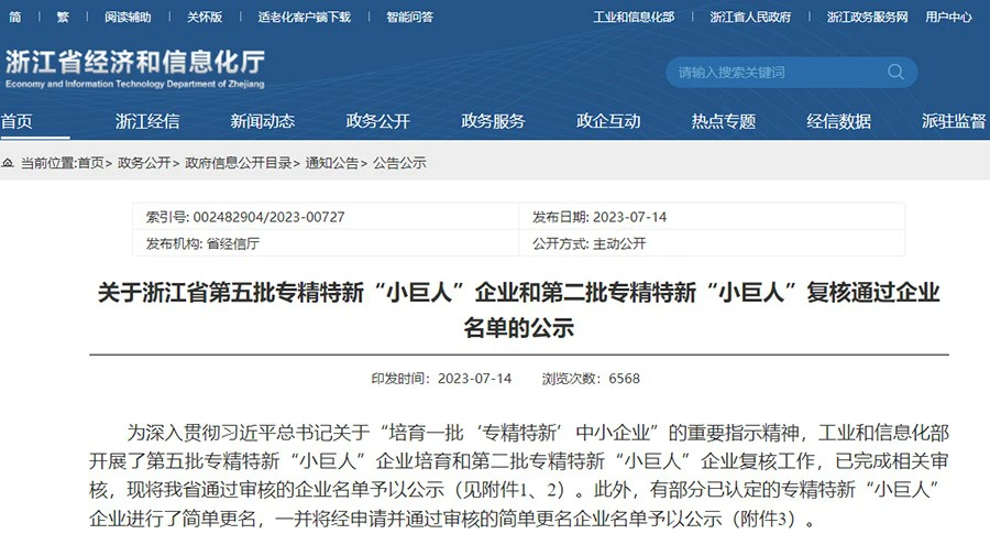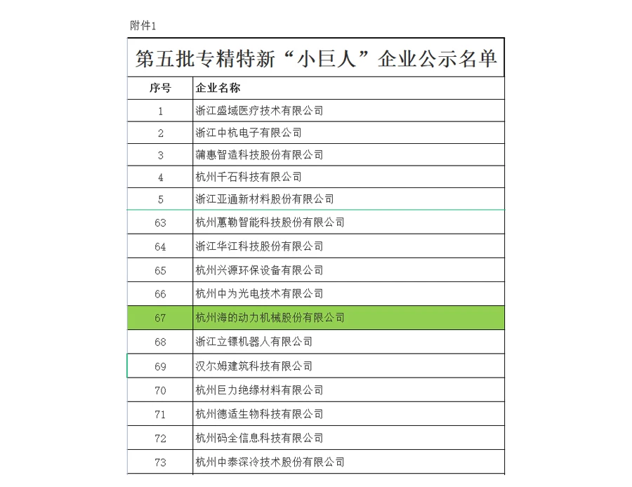 2023年7月14日,国家工业和信息化部公布了第五批专精特新“小巨人”企业名单,杭州海的动力机械股份有限公司(以下简称海的动力)通过国家级专精特新“小巨人”企业认定。