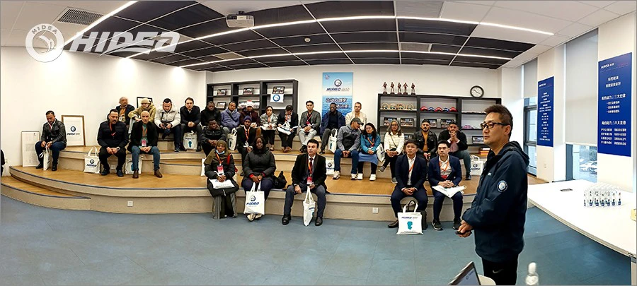 在二楼阶梯教室,海的工作人员做了详细的工作汇报。介绍了海的公司发展概况和历程,重点介绍了海的舷外机产品在国内外应急救援方面的良好表现等情况,并表达了与各位代表在更多领域深化合作的意愿。考察团代表也表达了与海的合作的意愿,期待未来达成更多合作共识。
